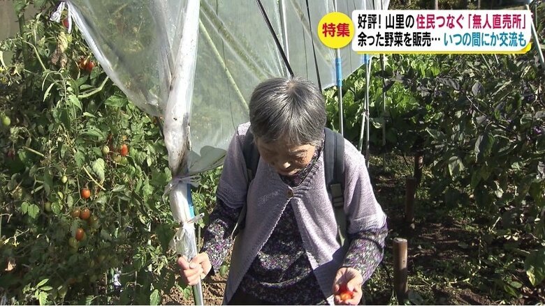 直売所の近くで3世代で暮らす85歳の女性。1人で20種類ほどの野菜を栽培。ほぼ毎日、直売所に出している。