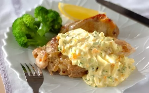 キュウリ入りの彩りの良いタルタルソースをチキンソテーにかけていただきましょう。タルタルソースはチキンソテーとも相性抜群です。10分で作れるので、忙しい日の夕食にももってこい。鶏もも肉は、鶏身の厚い部分をフォークで刺し、両面に塩コショウを振ることでより柔らかな仕上がりになります。